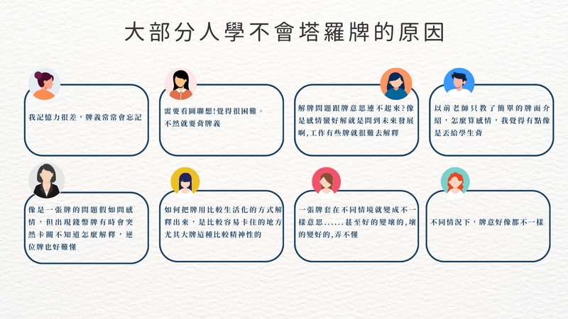 用淺顯易懂的語言,讓塔羅牌融入生活。 哲寬老師重視每位學員的學習體會,並且依照個人能力因材施教 非常了解大多數人學不會塔羅牌的原因,研究設計了一套有效率的方法與架構 實用派塔羅師