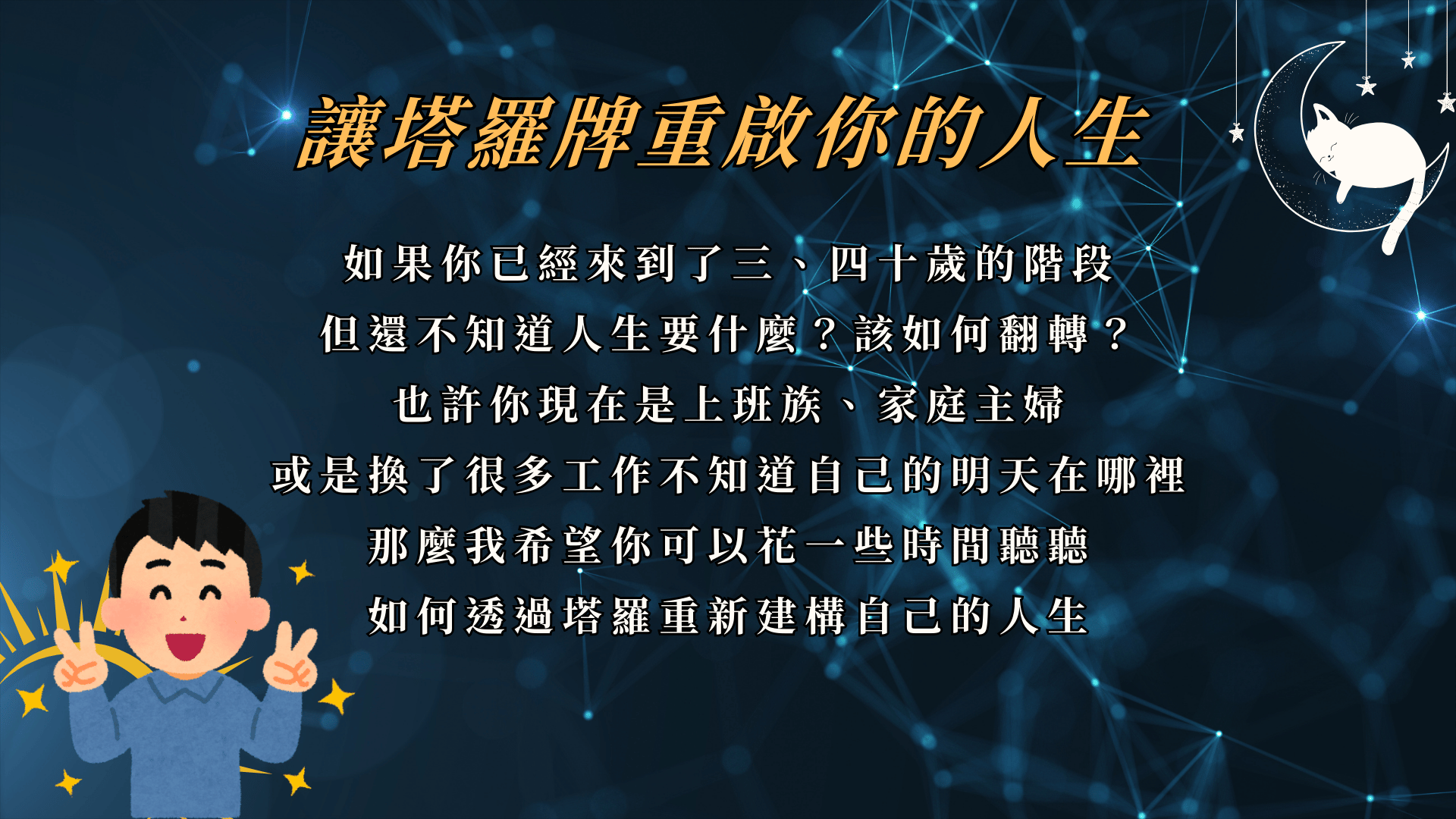 希望透過學習塔羅來幫助更多人脫離痛苦的循環,並且找到正確的方向。