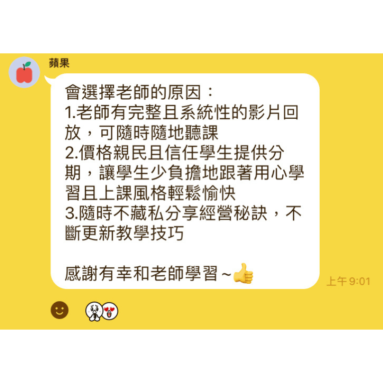 當然,只要學生沒有學會、有任何問題,我都能回答。